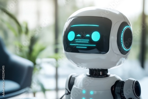Innovative robot technology showcasing friendly artificial intelligence in a modern workspace environment, System Artificial intelligence Chat Bot AI, Technology smart robot Ai application software