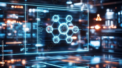 Innovative technology showcase digital network visualization modern office 3d graphics futuristic environment close-up viewpoint advanced concept