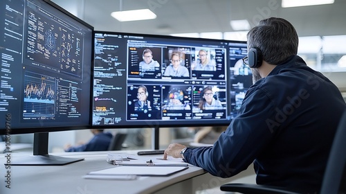 Innovative Virtual Classroom Setting with Teacher Presenting to Video Conference Students in a Dynamic and Engaging Digital Learning Environment
