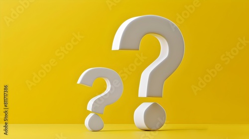 Inquisitive concept with large white question marks on a bright yellow background, symbolizing curiosity and queries. Perfect for design and marketing needs. AI