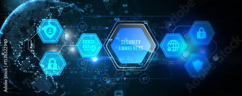Inscription Security Awareness. Information Security Skills Management Service. 3d illustration