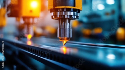 Inside a cutting-edge manufacturing facility, a laser machine processes metal, showcasing brilliant sparks, reflecting contemporary industrial precision and efficiency.