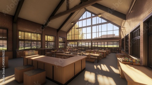 Inside a modern art studio with paint supplies, canvases, and natural light streaming through large windows