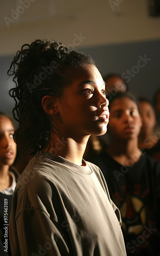 Inspirational Drama Teacher Directing Diverse Teenagers in School Play Production Rehearsal
