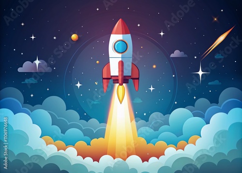 Inspiring Space Rocket Launch Symbol for Motivational Card – A Flat Design Illustration of a Rocket Flying Towards the Stars with a Dream Big Theme