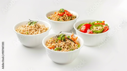 Instant Noodles on a White Background - A Tempting and Convenient Culinary Sight. The Colorful and Enticing Instant Noodles Placed on the Plain White Background, with Their Appealing Packaging and Del