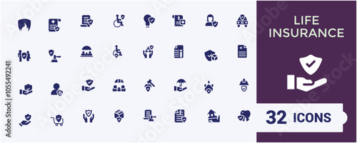 Insurance flat solid icon set. Related to business, finance, assurance, home, insurance and more. Flat UI icon design. Editable vector icon and illustration.