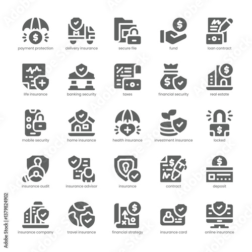 Insurance Icon pack for your website, mobile, presentation, and logo design. Insurance Icon solid design. Vector graphics illustration and editable stroke.