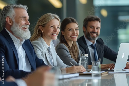 Intelligence analysis concept group of business people brainstorm discussing current finance and economy on company investment laptop at meeting