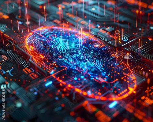 Intense Biometric Fingerprint Scan with Pulsing Cybersecurity Protocols