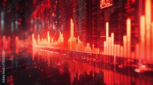 Intense close-up 3D image of shoulder tech for financial advisors, tax graphics hovering, stark red setting