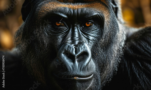 Intense Close-Up Portrait of a Gorilla's Face with Piercing Eyes, Emphasizing the Soulful Intelligence of Wildlife