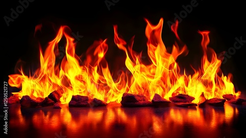Intense flames of a raging inferno burning with fiery power and dramatic energy creating a powerful and destructive scene of combustion and heat