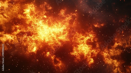 Intense flames raging, creating a bright, fiery background that conveys heat, power, and destruction.