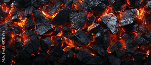 Intense glowing embers scattered against a dark background creating a vivid texture