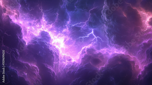 Intense lightning storm with vibrant purple clouds in a dark sky