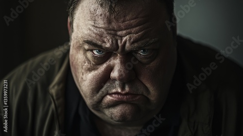 Intense Portrait of a Man with Sweaty Expression and Serious Gaze in Low Light Setting