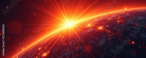 Intense starburst effect on the surface of a blazing sun , heat, light