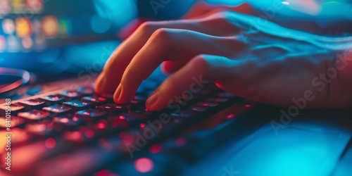 Intensely focused hands type on a computer keyboard, showcasing the intersection of technology and human interaction up close. 🖐️⌨️💻