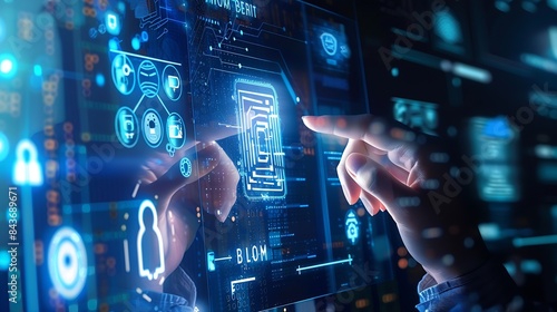 Interactive KYC compliance interface with the user Business professional interacting with a Know Your Customer KYC compliance and security interface on digital screen Identity verifica : Generative AI