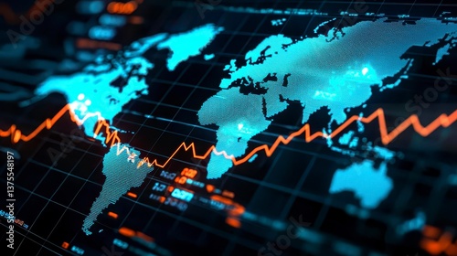 Interactive map of global e commerce activity close up on real time data points and transactions dynamic and informative. Global online trade a live view.