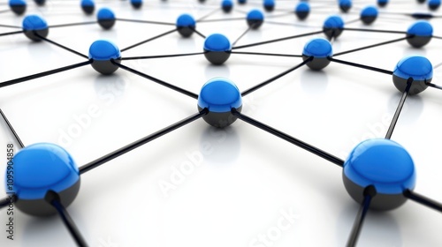 Interconnected blue spheres network, futuristic visualization of global digital connections and technological advancements