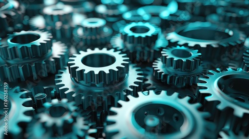 Interconnected Gears: Abstract Illustration of Teamwork and Collaboration in Industrial Corporate Environment, Futuristic Technology Concept