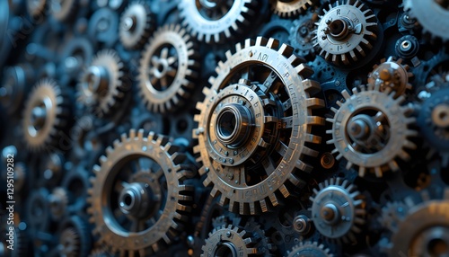 interconnected gears and cogs It symbolizes the complex and interdependent mechanisms of business analysis and data processing