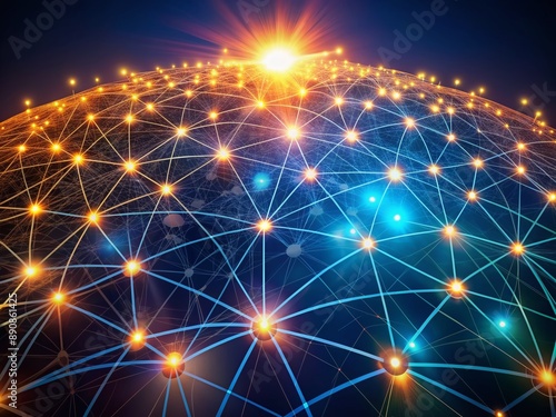 Interconnected glowing lines and nodes form a complex network, symbolizing unity and collaboration within a vibrant community, conveying a sense of modern teamwork and connection.