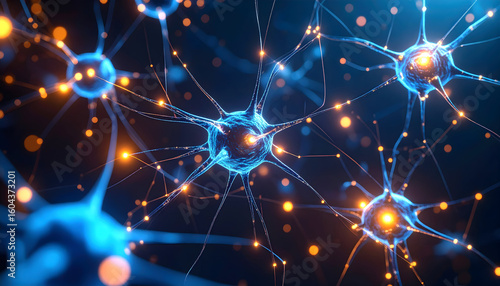 Interconnected neurons neural network highlighting connectivity and intelligence