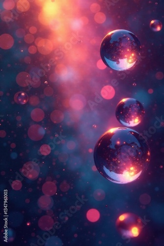 Interconnected orbs suspended in a kaleidoscope of colors, technology, abstract, background