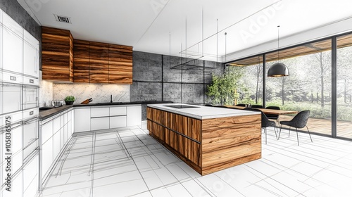 Interior Design Floor Plan with Open Kitchen and Detailed House Renovation Blueprint