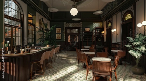 Interior of cafe. AI generated art illustration.