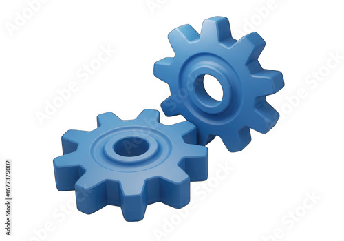 Interlocking Blue Gears on Transparent Background, 3D Rendered Mechanical Parts