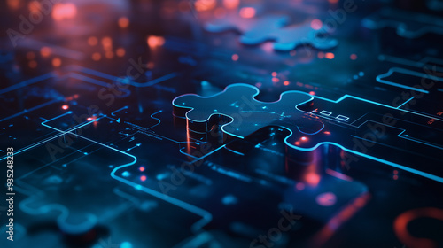 Interlocking digital puzzle pieces with a glowing, tech-inspired background, illustrating the seamless integration of APIs