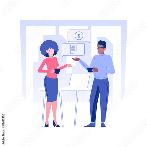Internal communication isolated concept vector illustration. Colleagues talking and drinking coffee, workers communication, business etiquette, corporate culture, company rules vector concept.