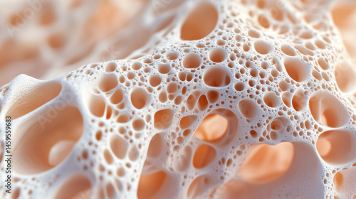 Internal structure of bones, spongy and layered structure background, clean beige background, 3d render. medical concept. 3d illustration.
