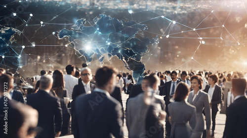 International business partnership. Business people standing silhouette on world map background, Global business concept. Global business concept, generative ai.