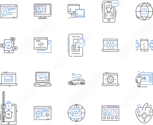 Internet and science outline icons collection. internet, science, technology, innovation, research, development, computer vector and illustration concept set. software, hardware, network linear signs