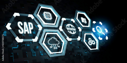 Internet, business, Technology and network concept. SAP System Software Automation concept on virtual screen data center