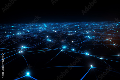 internet networking concept illustration, network of glowing blue lines on black background, tech wallpaper, information flow backdrop