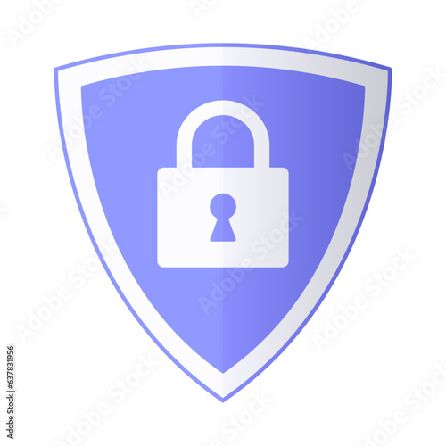 Internet security symbol. padlock on shield background, traffic encryption, vpn, privacy antivirus protection hack, blue background shield, design, vector, flat style.