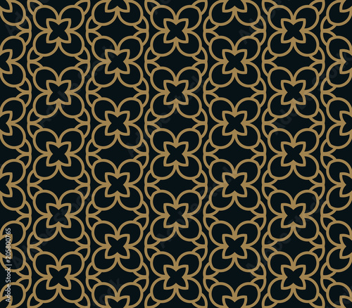 Intersecting curved elegant fine lines and scrolls forming abstract floral ornament. Seamless pattern for background, wallpaper, textile printing, packaging, wrapper, etc.
