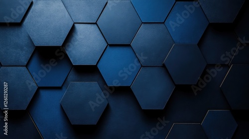 Intersecting hexagons on a Blue background, minimalist design banner template with white space for text. Suitable for tech-oriented and modern presentations, websites, and digital designs.