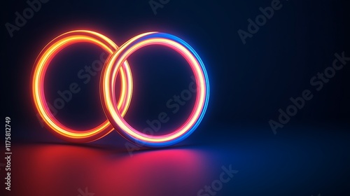 Intertwined Neon Rings Glowing Brightly In Darkness