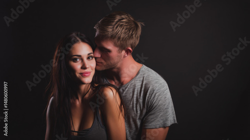 Intimate Couple in Romantic Mood – Passionate Portrait with Dark Background