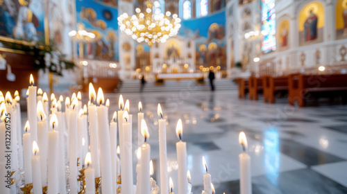 Intimate view of candlelit church interior with ornate decorations for spiritual reflection