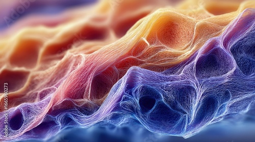 Intricate abstract artwork featuring colorful layers and flowing textures.