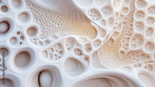 Intricate abstract design featuring textured patterns resembling organic structures in soft white tones