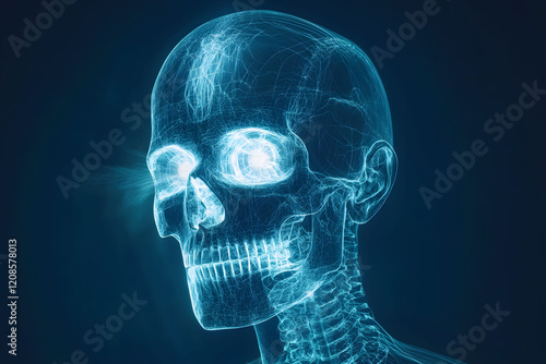 Intricate Anatomy: A 3D Wireframe Rendering of a Human Skull, showcasing the complexity of the skeletal structure.